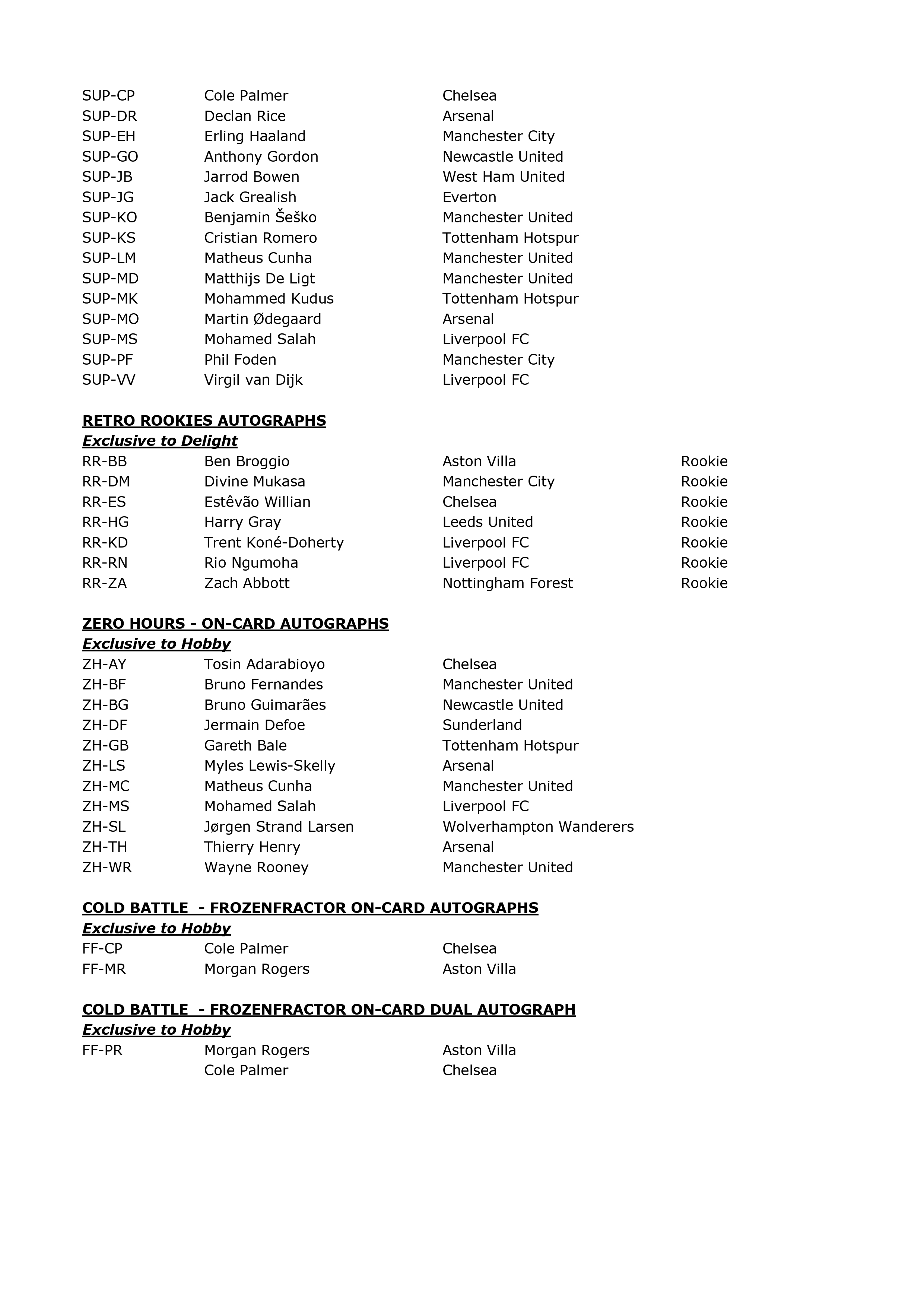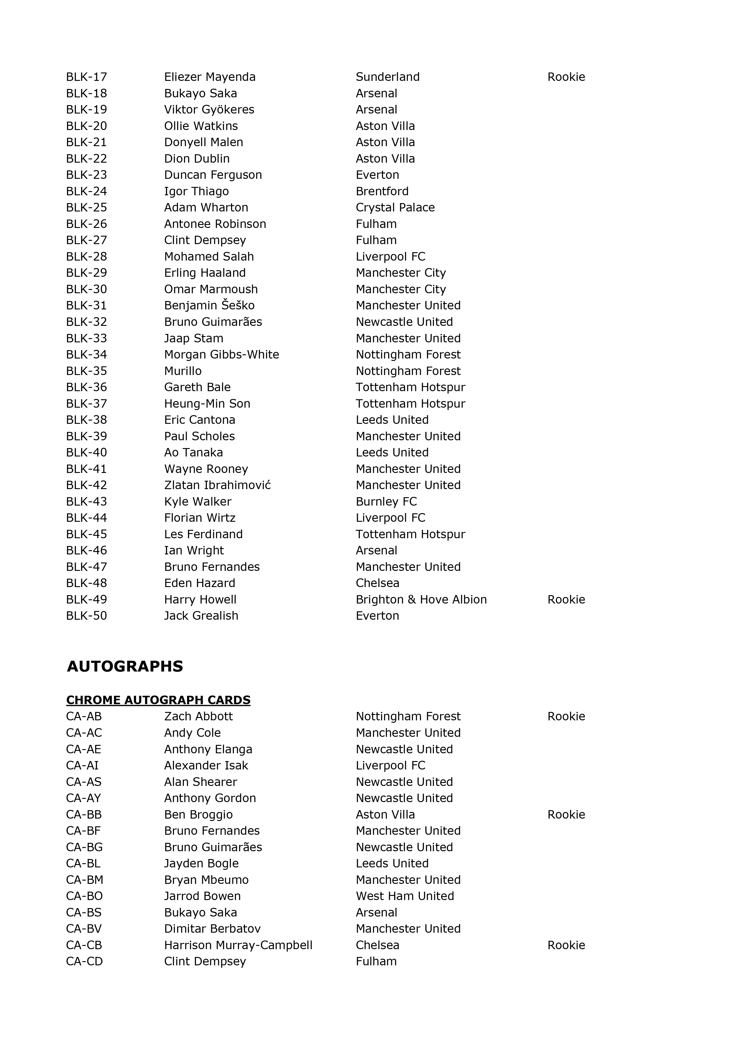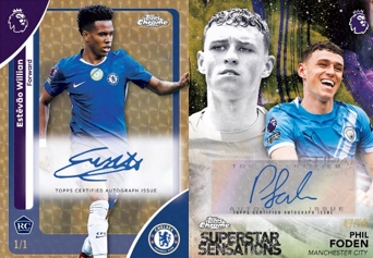 Find a rainbow of autograph cards, featuring the hottest prospects, biggest stars and most memorable legends. Mohamed Salah, Max Dowman, and Rio Ngumoha each signed on-card autographs for the SuperFractor, Red Refractor, Black Refractor, Orange Refractor, and Gold Refractor parallels. Estêvão Willian has on-card signatures on his SuperFractor, Red Refractor, and Black Refractor parallels.